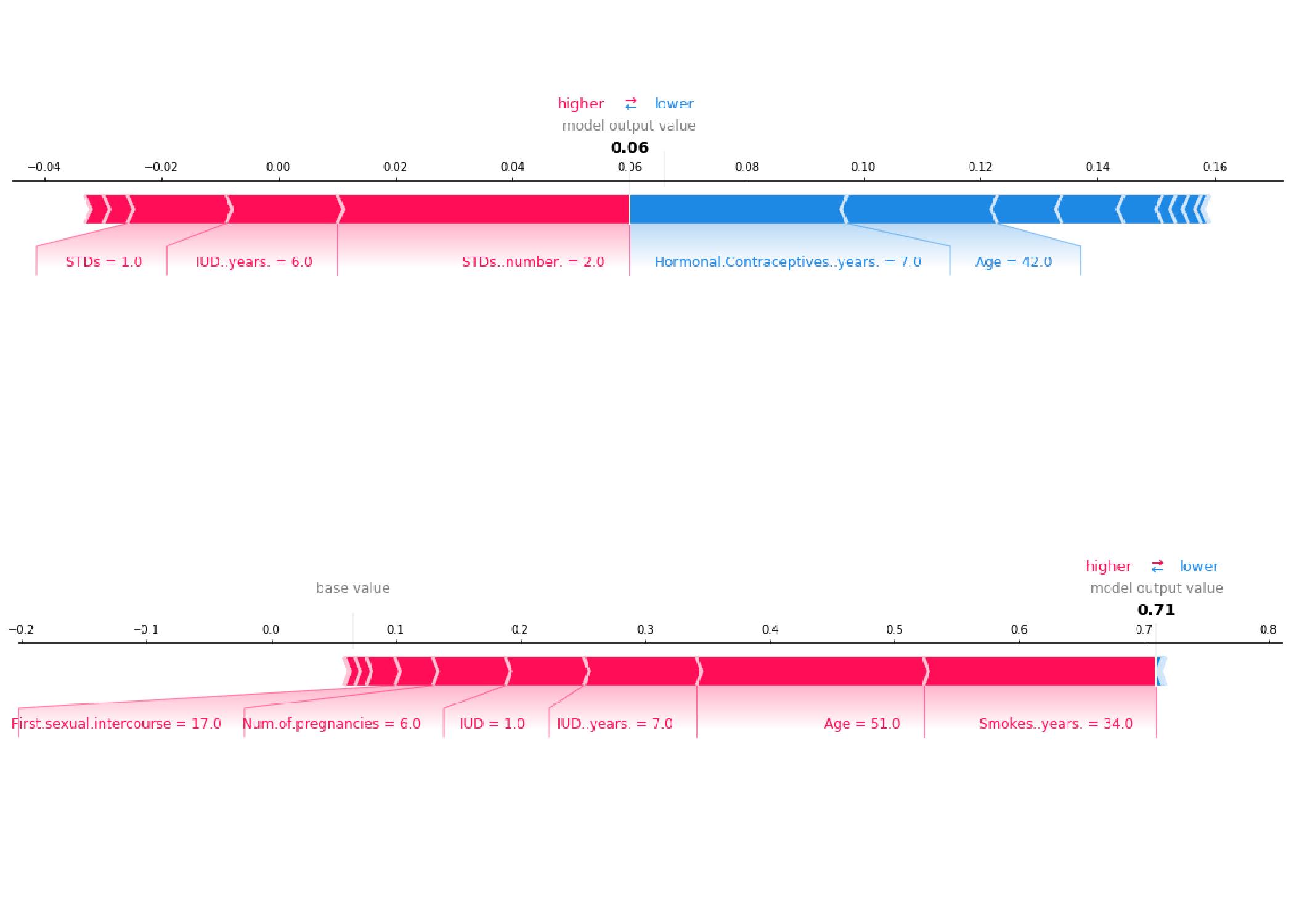 Una explicación por contrafácticos intenta explicar la predicción de un dato a través de revelar cómo cambiaría la predicción si cambiase el dato en uno y otro atributo.